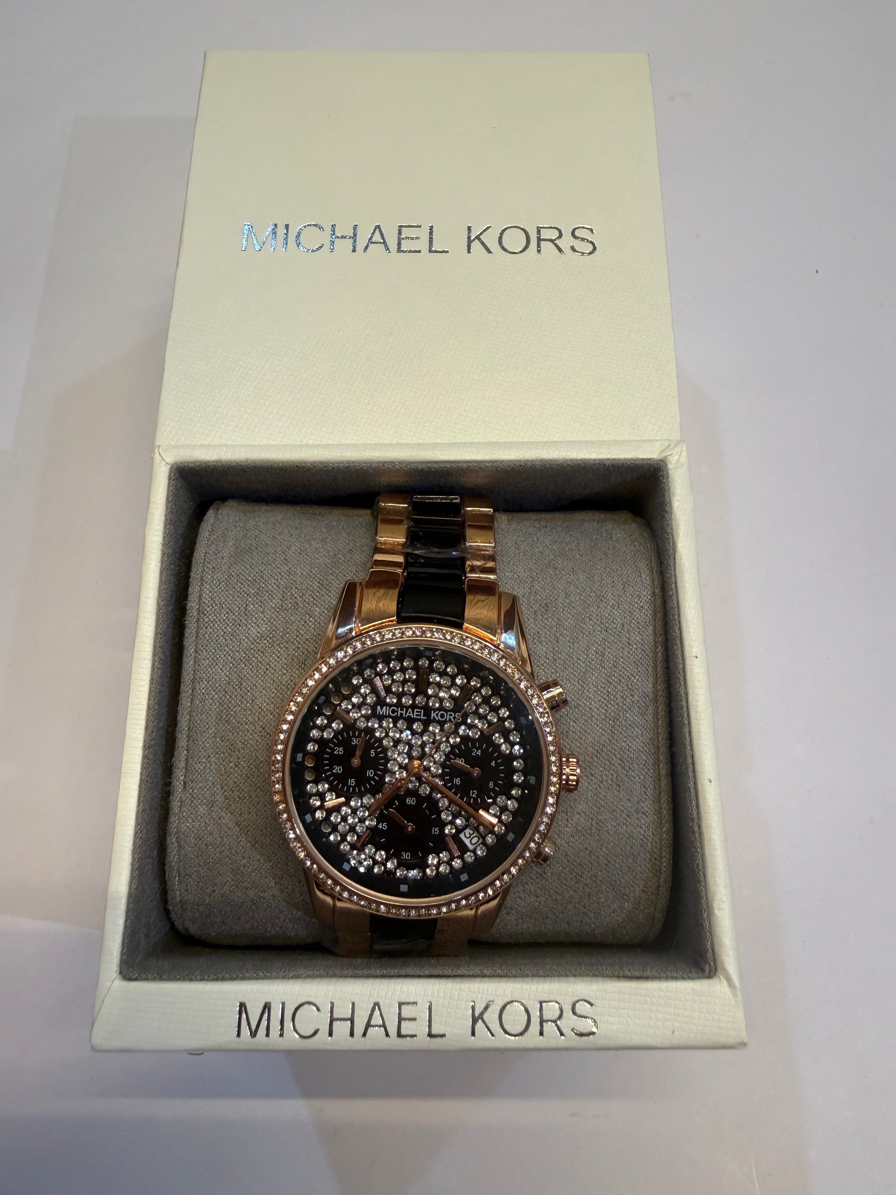 Michael Kors Ladies Watch – is a fashionable and elegant timepiece designed for women who love modern luxury. It features a stylish dial with a refined finish, paired with a sleek metal or leather strap that adds a classy look to any outfit.